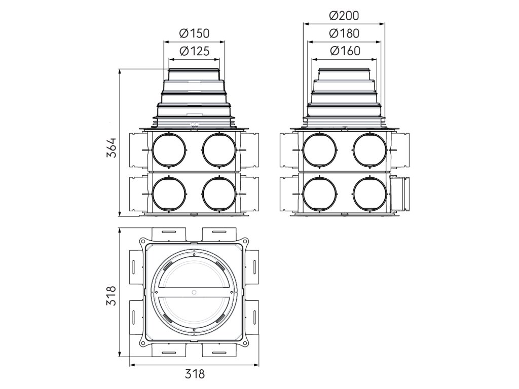 | Pripojovacie rozmery: | DN125mm, DN160mm, DN200mm, DN75mm, DN90mm, 50x140mm, DN180mm, DN150mm |