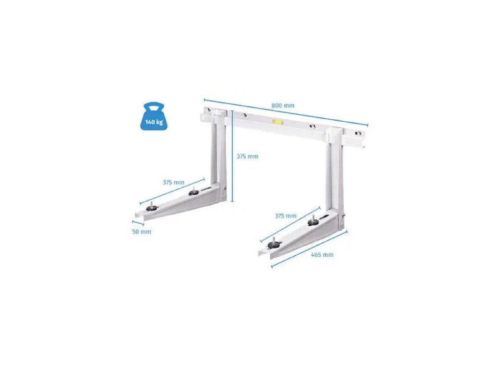 Konzola je k dispozícii s nosným ramenom dĺžky 420x800mm a nastaviteľná traverza s vodováhou RAL 9002.