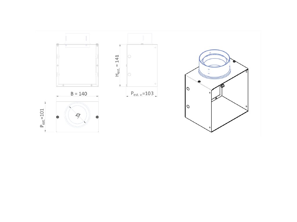 Pripojovací box s bočným pripojením 1xDN75mm, 140x140x100