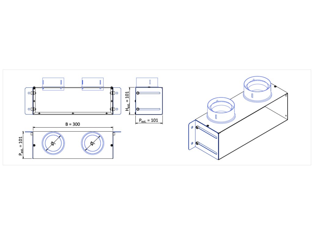 Pripojovací box s bočným/rovným pripojením 2xDN75mm, 300x100x100