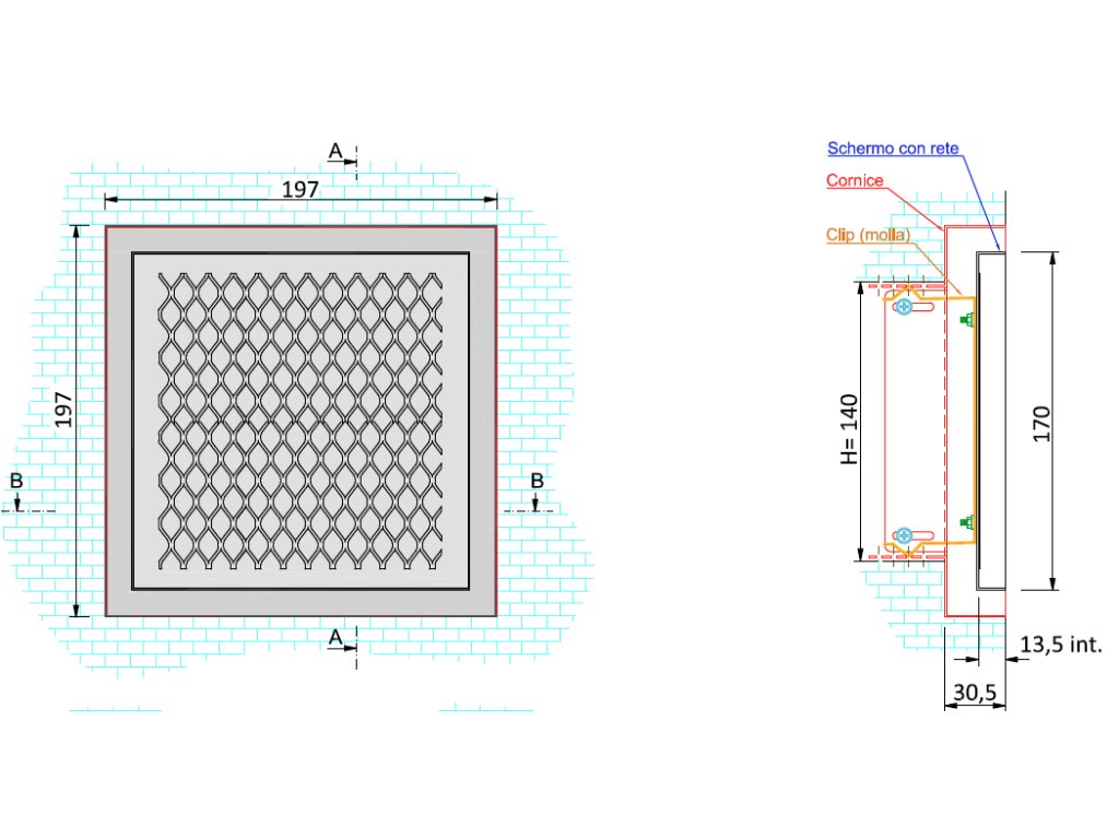 Typy inštalácie: - inštalácia na úroveň omietky - inštalácia na úroveň sadrokartónu - inštalácia na úroveň obkladu Materiál : nerez Rozmer difúzora : 197x197mm Pripojovací rozmer : 140x140mm Prietok pri 3m/s : 41 m3/h |