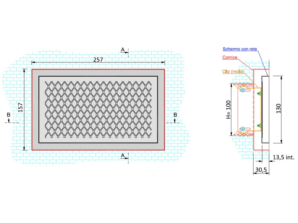 Typy inštalácie: - inštalácia na úroveň omietky - inštalácia na úroveň sadrokartónu - inštalácia na úroveň obkladu Materiál : nerez Rozmer difúzora : 257x157mm Pripojovací rozmer : 200x100mm Prietok pri 3m/s : 44 m3/h |