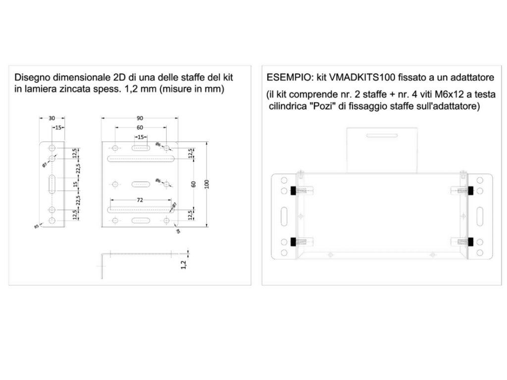 Súprava pozostávajúca z 2 konzol v tvare L z pozinkovaného plechu a 4 skrutiek na upevnenie na (uzavreté) vložky adaptérov.