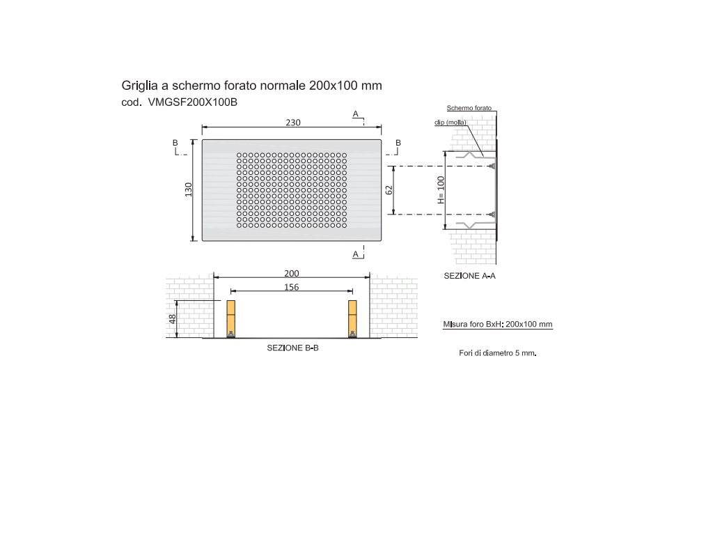 Stenový difúzor s bielou perforovanou čelnou doskou 200x100