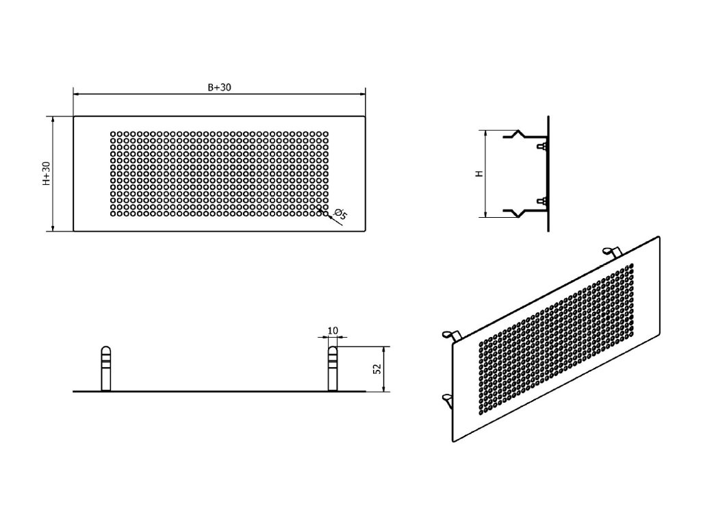 Stenový difúzor s nerezovou perforovanou čelnou doskou 200x100