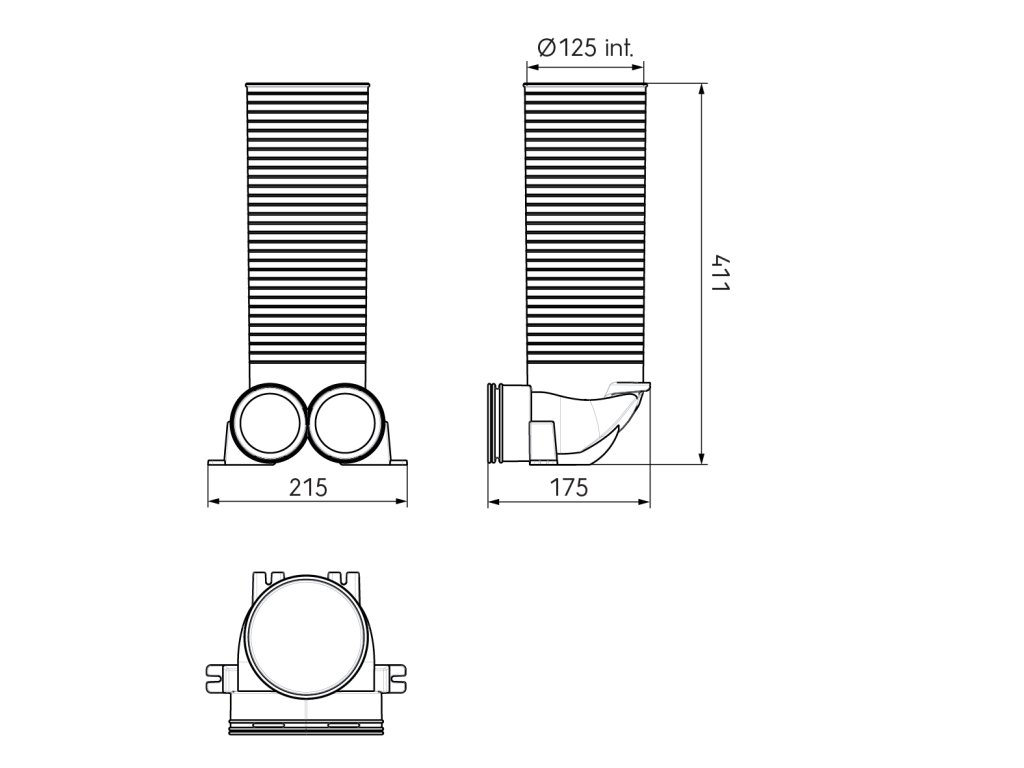 Stropný/stenový pripojovací box 90° DN75mm na ventil 125mm