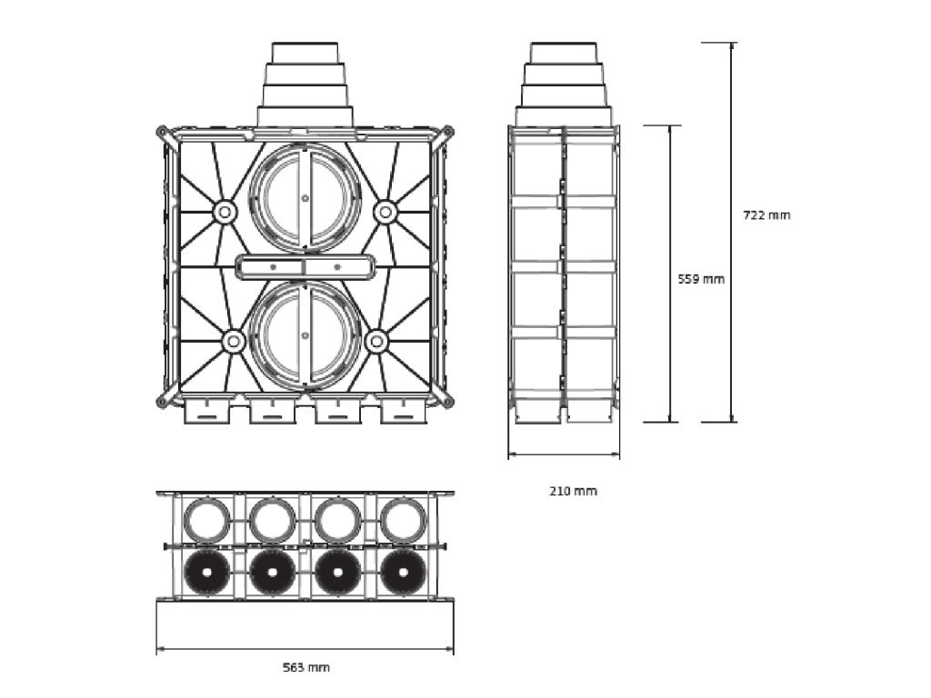 | Pripojovacie hrdlá: | 8xDN75mm / DN90mm / 50x140mm |