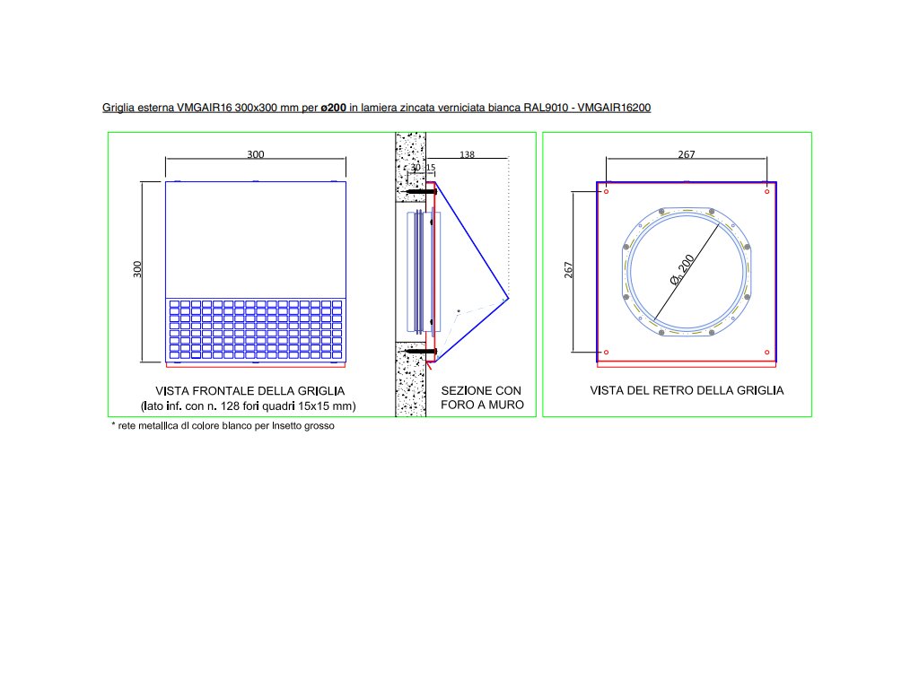 Ventilačná stenová výustka biela DN200mm s tesnením