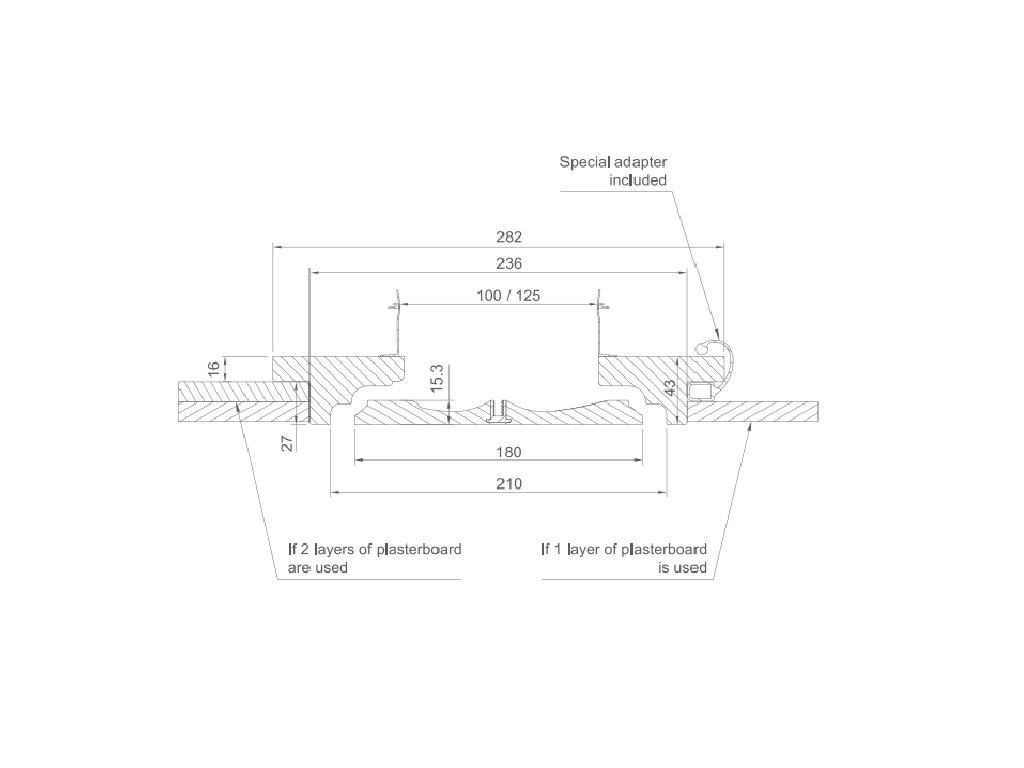 Rovnako ako všetky difúzory VENTMANN, aj každá verzia modelu CIRCLE môže byť omietnutá spolu so stenou alebo stropom a môže byť aplikovaná rovnaká farba. To umožňuje novú úroveň elegancie a bezproblémovú integráciu ventilačných systémov. Ventmann CIRCLE 125 je kompatibilný so systémom Air Excellent alebo s potrubóm spiro DN125mm.