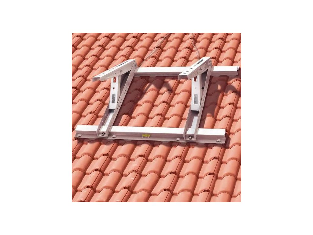 Skladacia strešná montážna konzola MT630 sa používa na upevnenie klimatizácie na strmom sklone strechy (aj na škridle) . Držiak je vyrobený z kovu s práškovou povrchovou úpravou. Nosník je vybavený vodováhou, ktorá uľahčuje jeho správnu inštaláciu. Balenie obsahuje dva montážne nosníky, dve nastaviteľné ramená a montážnu súpravu (skrutky a podložky).